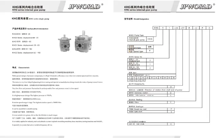 KHG1-32-01R-VPC齒輪泵JPWORLD沃特油泵20/25/40/50/63 HG0系列